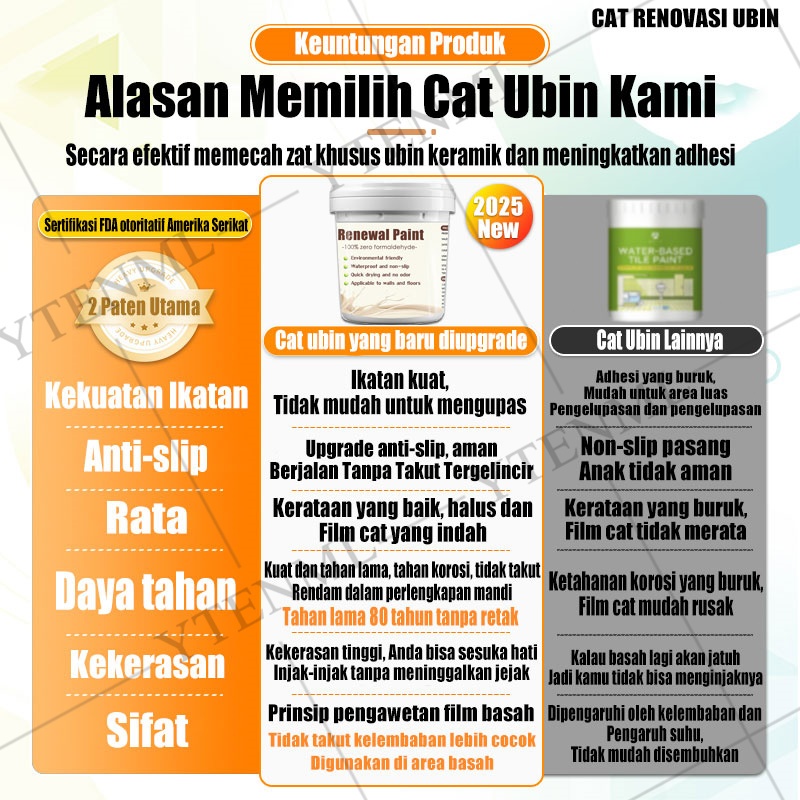 10-in-1 Tahan air dan tidak licin Tahan Genangan Khusus Kamar MandiCat Keramik Renew Renovasi lantai cat keramik lantai