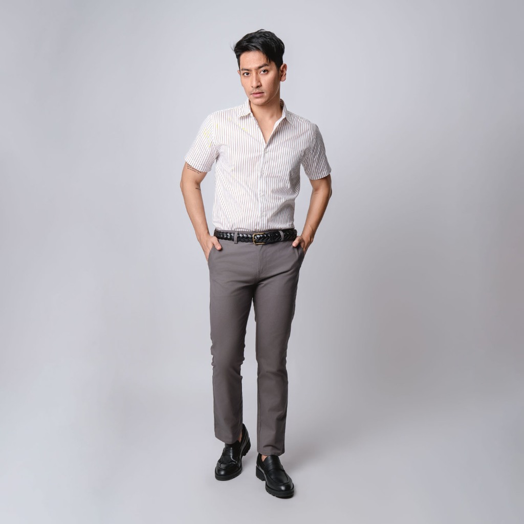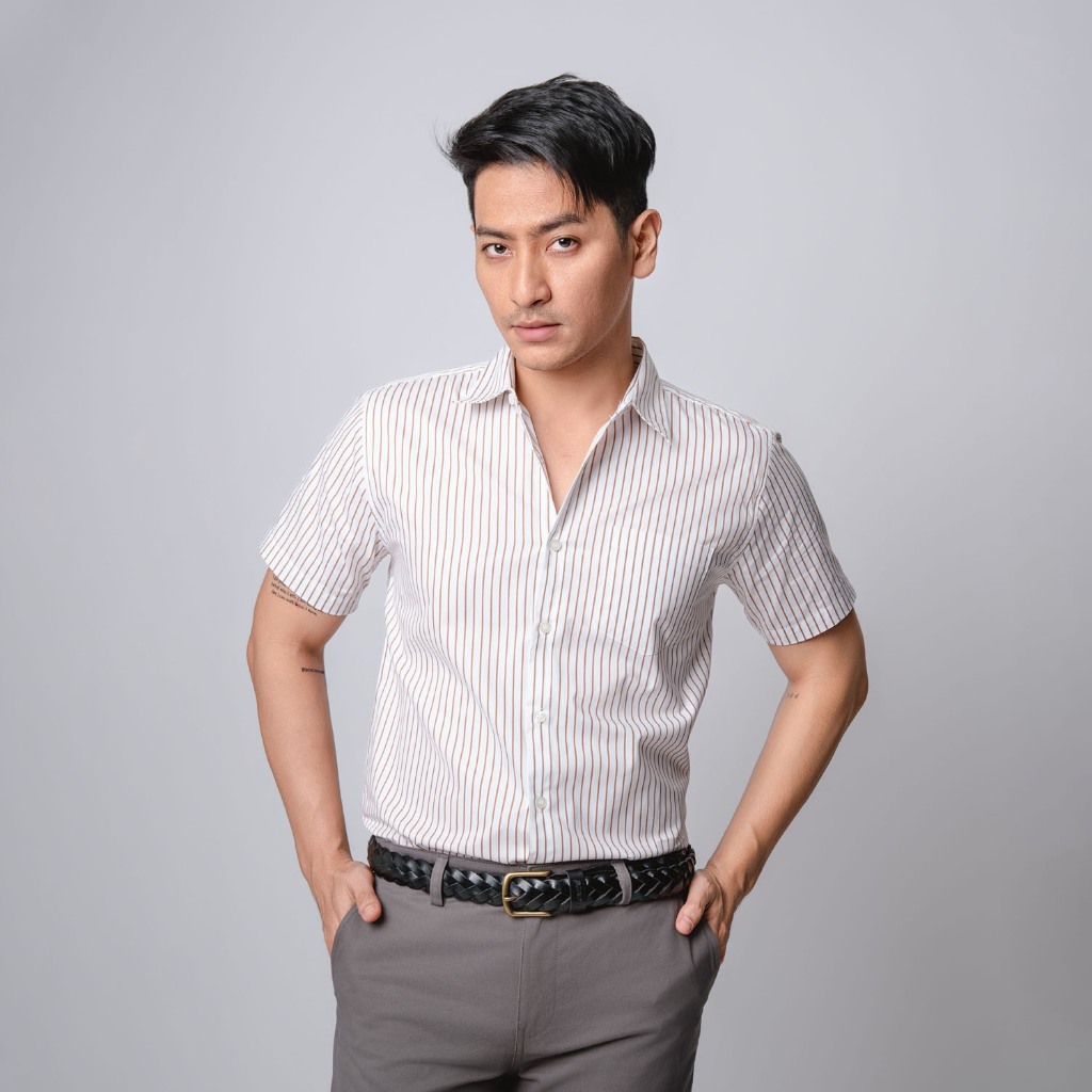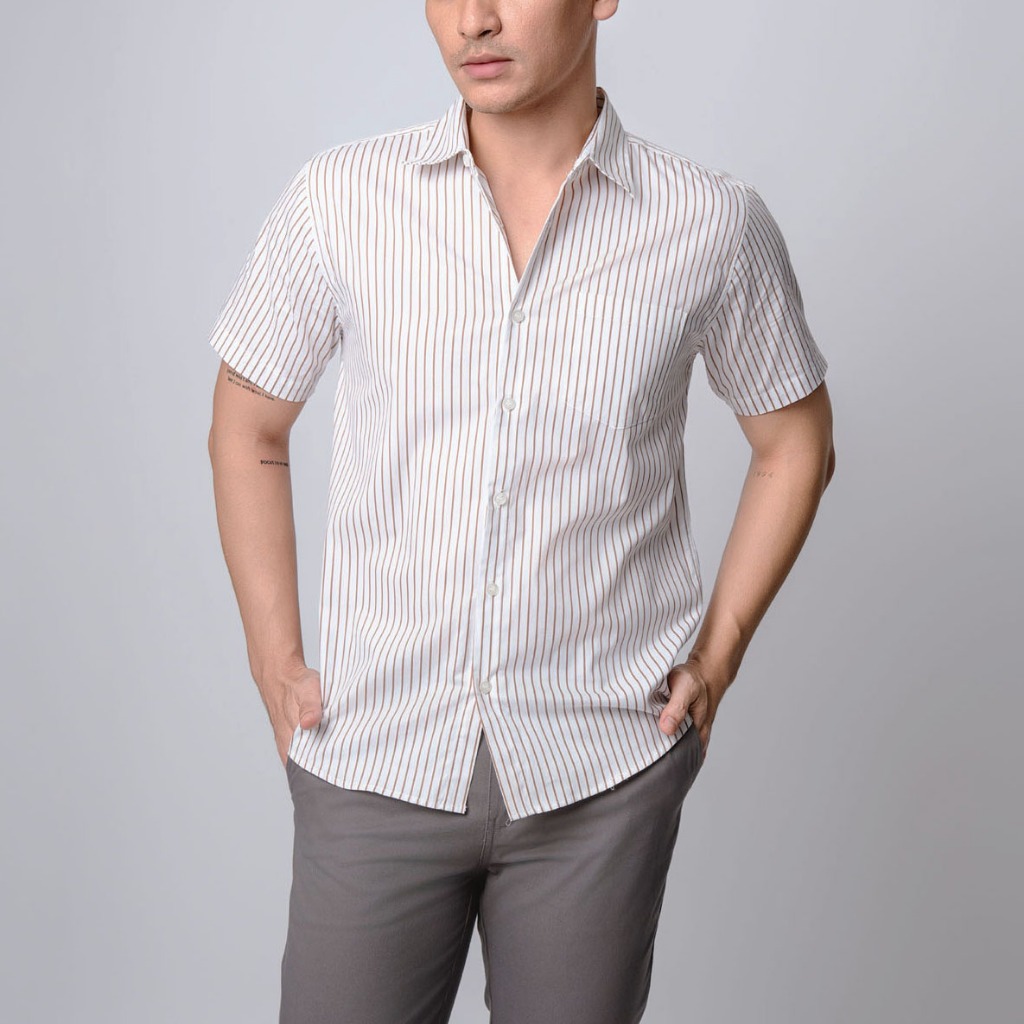 [Mall] VENGOZ Kemeja Pria Slim Fit - Hugo Stripe Shirt Brown White SS