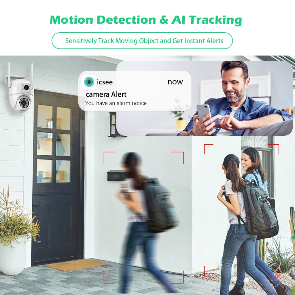 GUOANVSION 8MP CCTV Kamera 6X Zoom ICSEE PTZ Pelacakan Humanoid Lensa Ganda WiFi iP66 Outdoor Surveillance Kamera