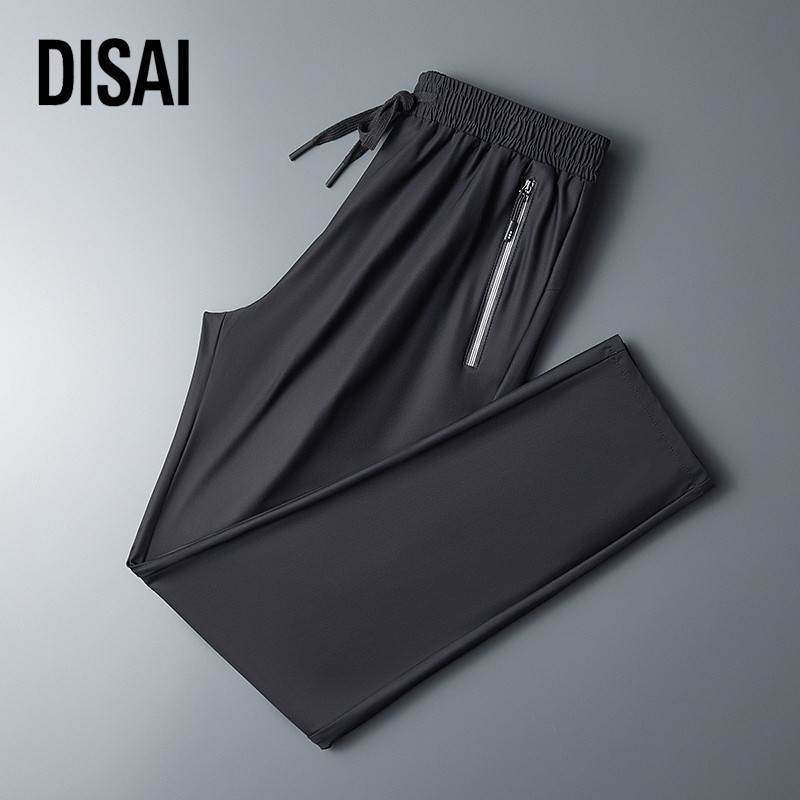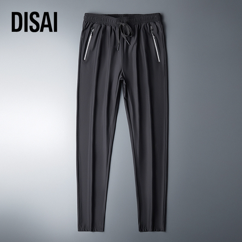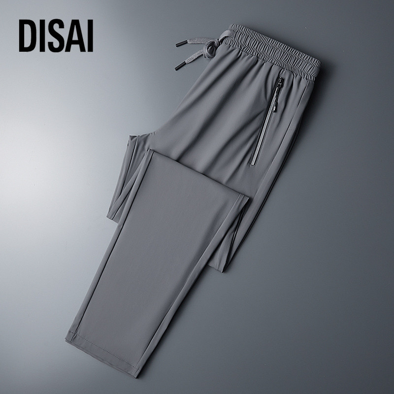 [Mall] Celana Pria Saku Ritsleting Panjang Ice Silk Fabric Keren Ringan Bernapas Elastisitas Pants