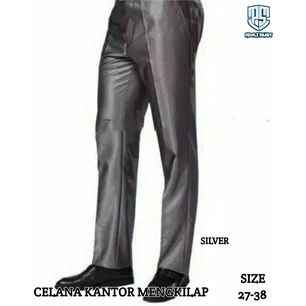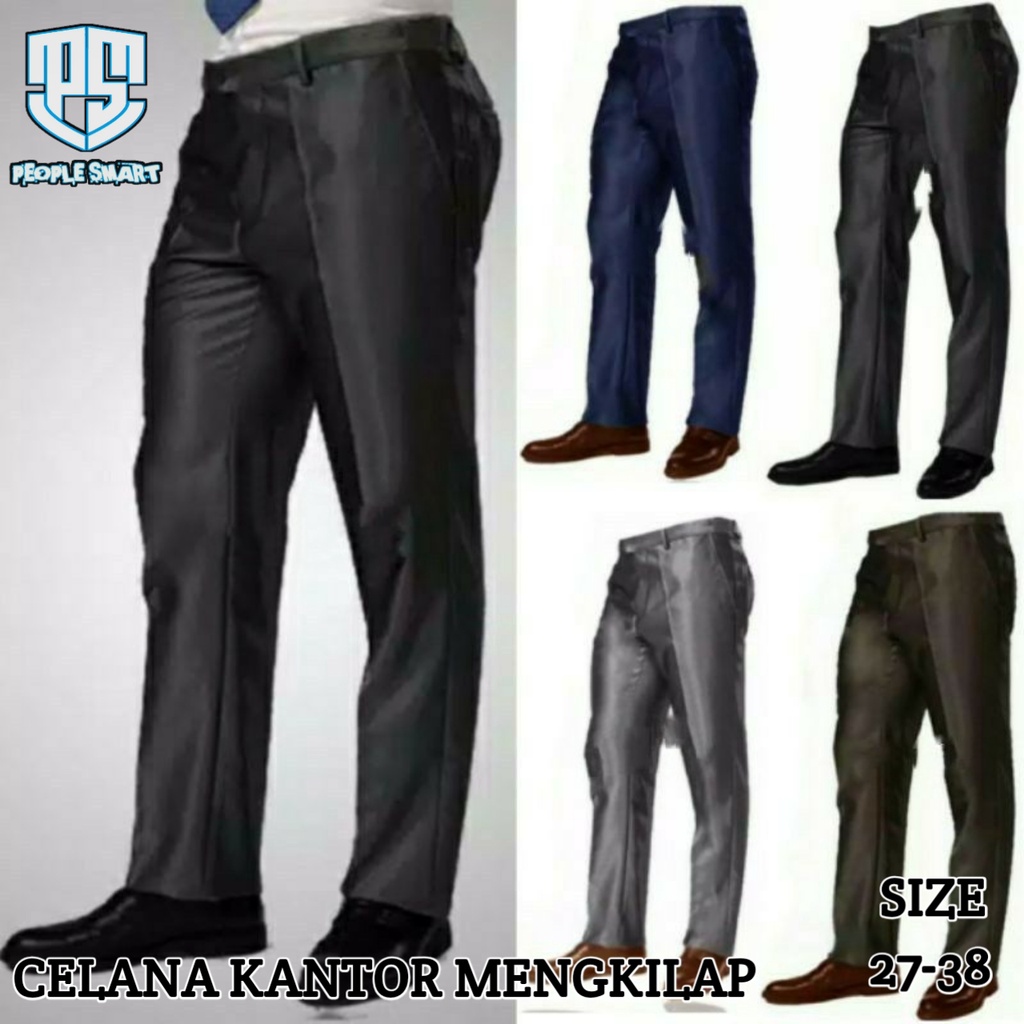 [Mall] CELANA KERJA SLIMFIT METALIK MENGKILAP FORMAL KANTOR BAHAN HITAM