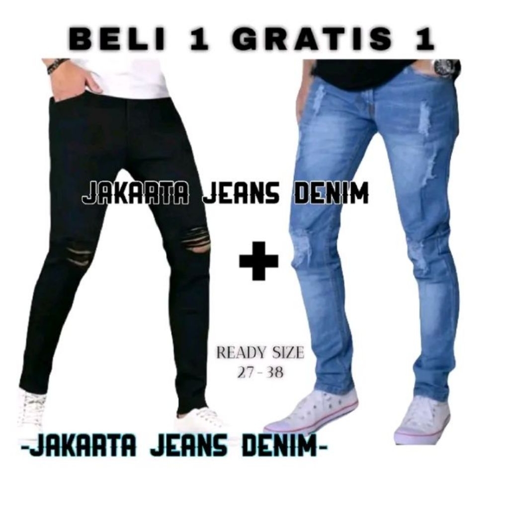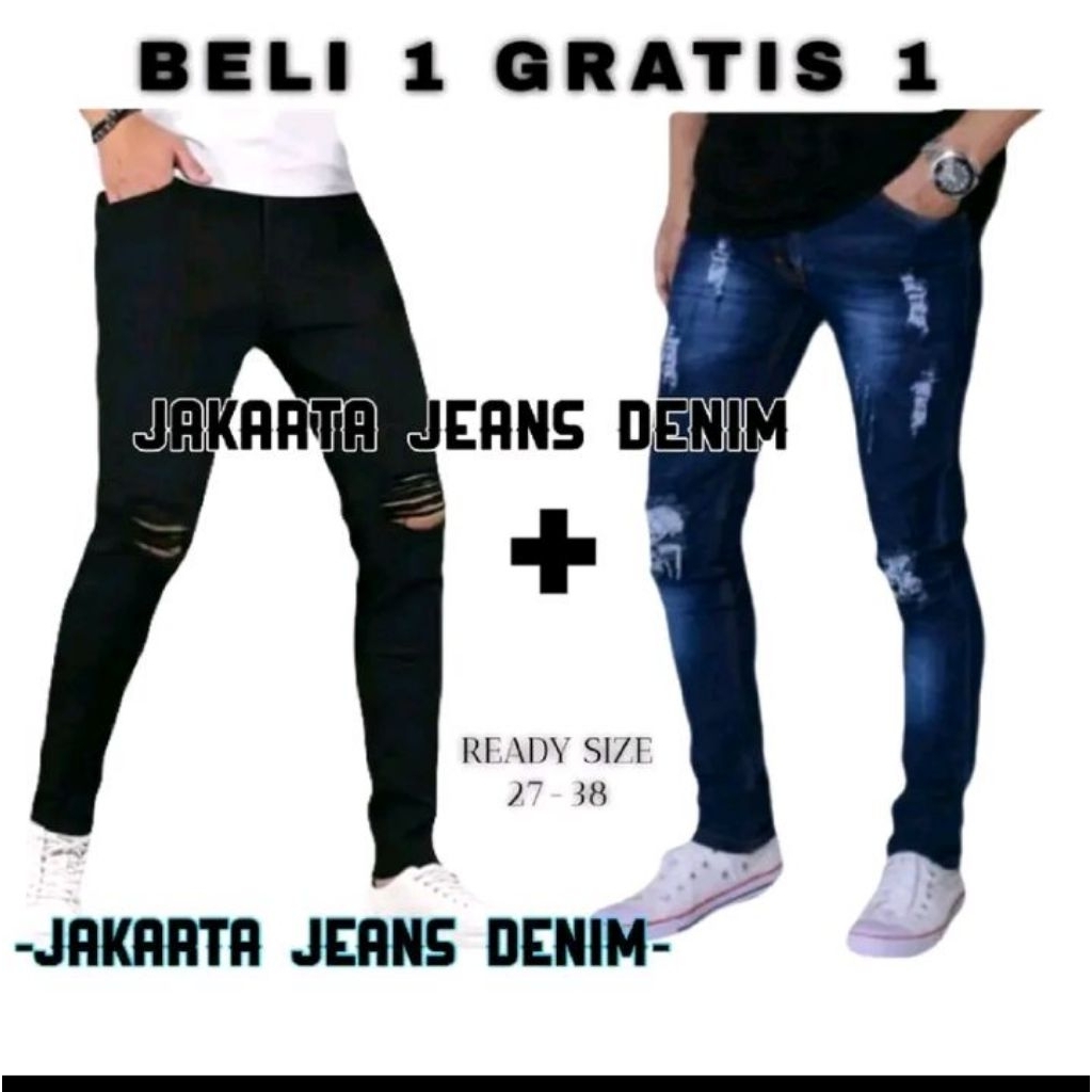[Mall] (PAKET HEMAT ISI 2PCS)Beli Satu Gratis 1pcs Celana Jeans Pria-Celana Jeans Sobek Ripped-Jeans Pria Slim fit Motif Sobek-Celana Cowok Distro Terlaris