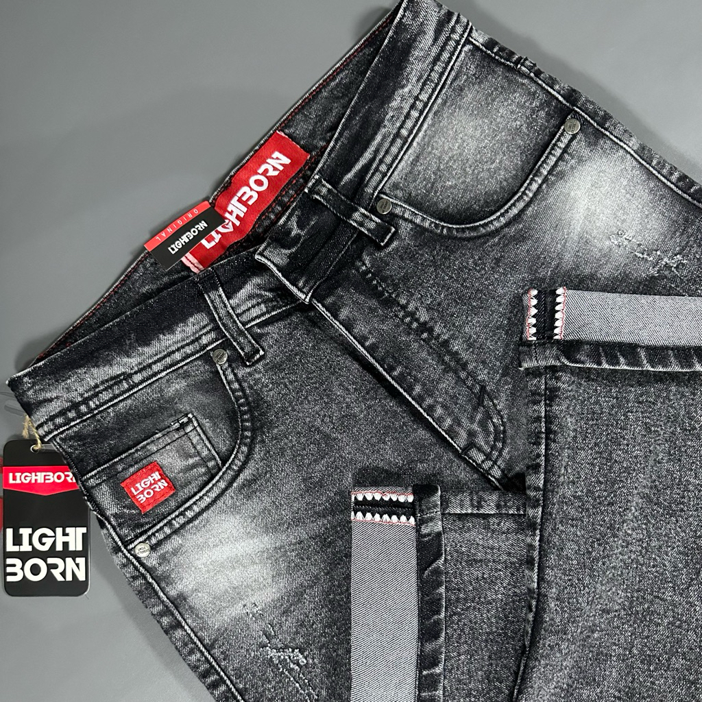 [Mall] LIGHTBORN Celana Denim Pria Roger Wolfy Snow Black, Slimfit Selvedge, Long Pant Men