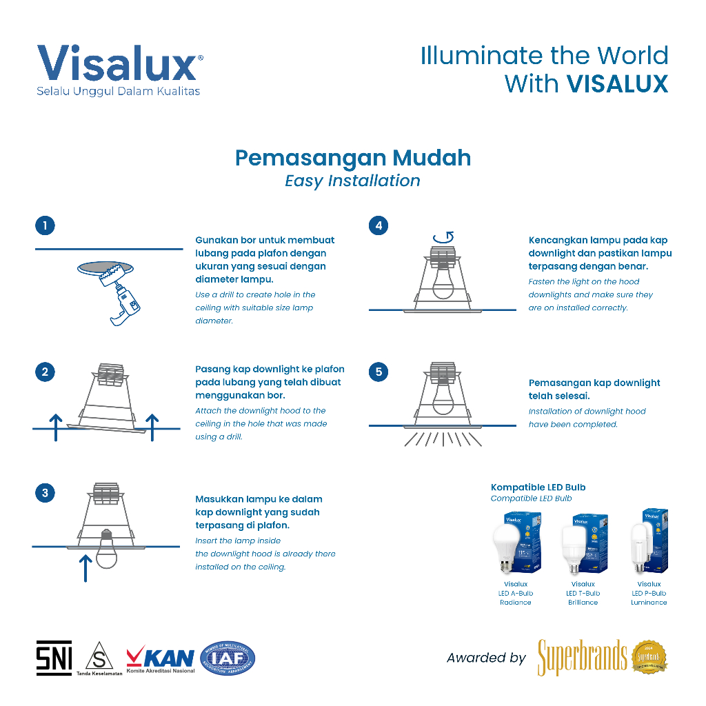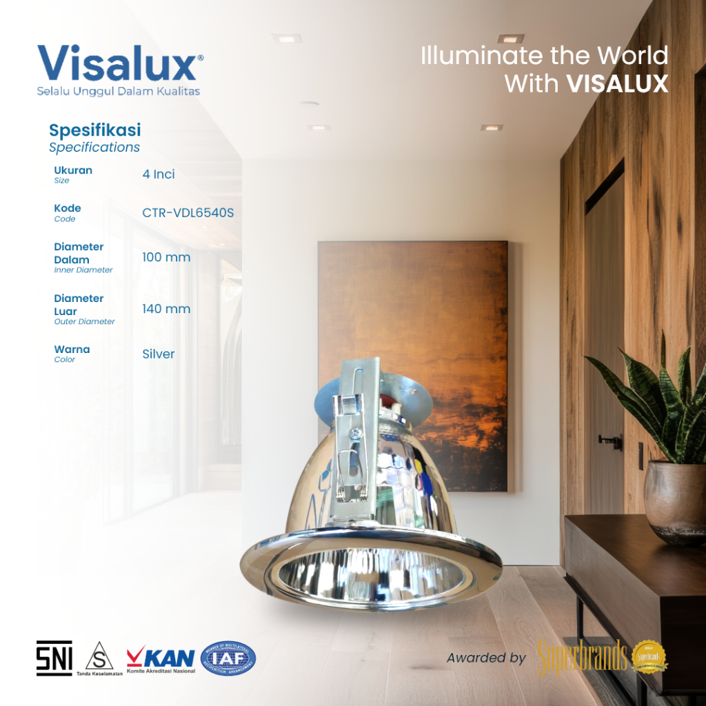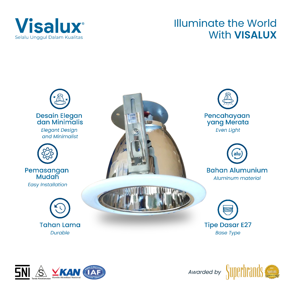 Visalux Kap Lampu Downlight Fitting E27 Caster 4 Inch Warna Putih / Silver