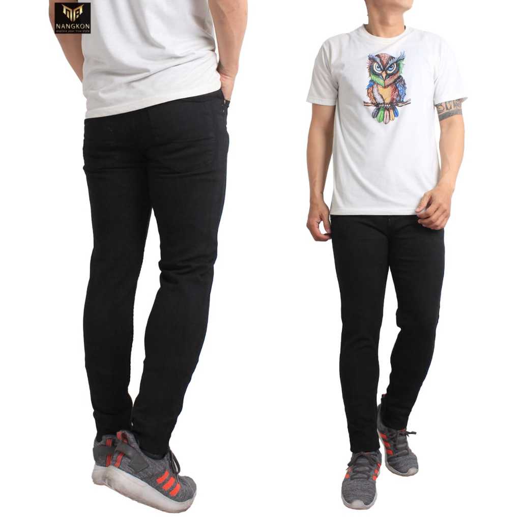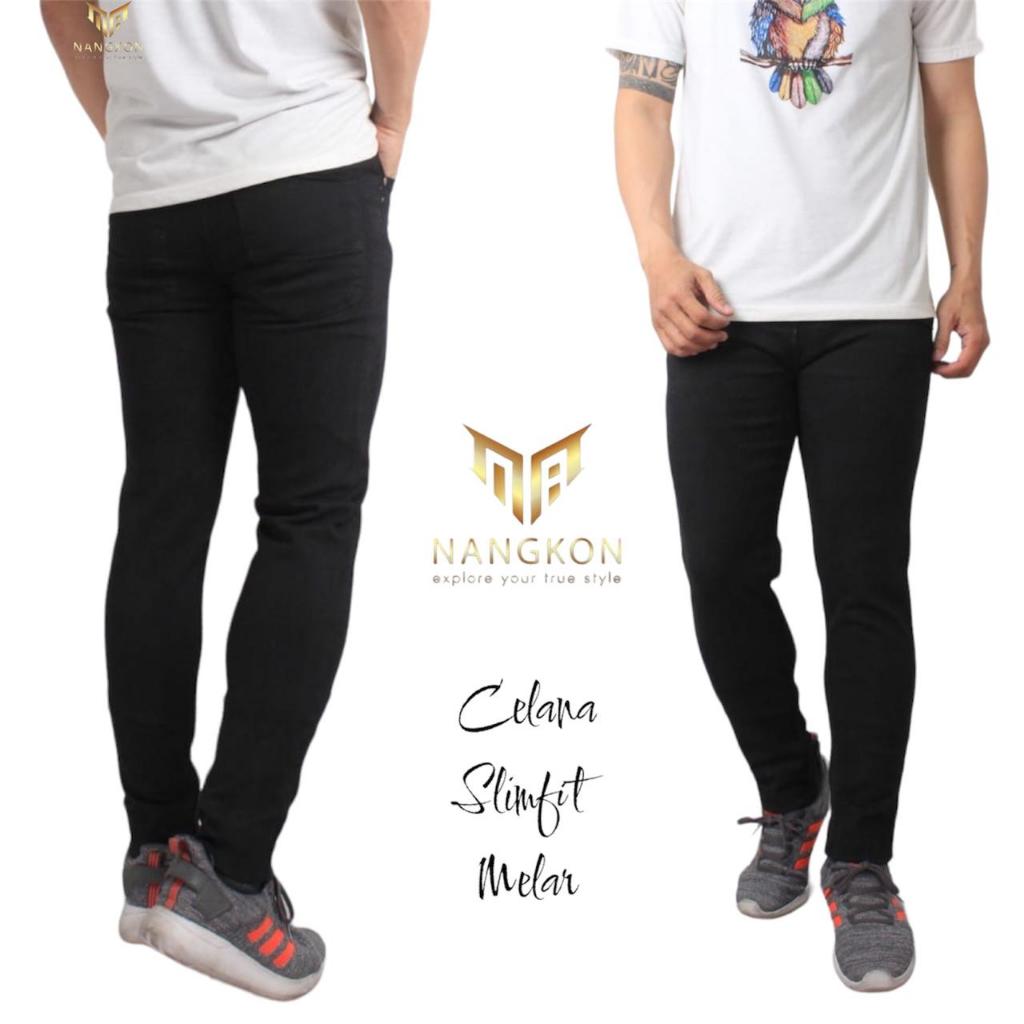 [Mall] APL STORE - Celana Jeans Pria Bahan Melar Slimfit Pensil Cowok Hitam Pekat Streech Premium