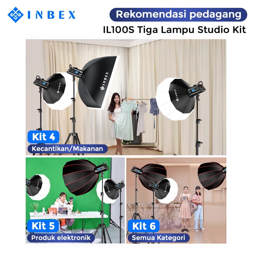INBEX IL-100S Lampu Studio Softbox Kit 100W Live Lampu Foto Studio Fil Light LED Screen Softball Softbox Godox video Li