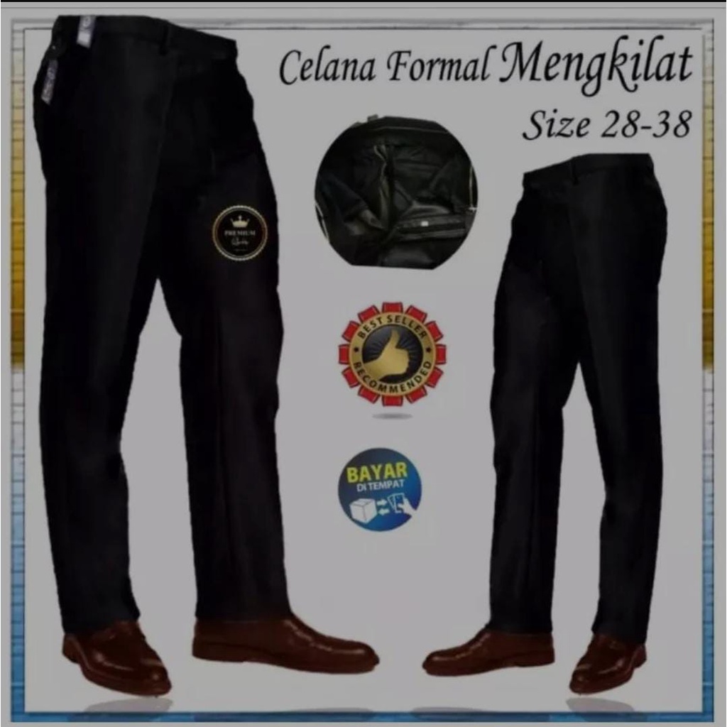 [Mall] Celana Bahan Dasar Mengkilap Metalik Slimfit Kerja Kantor Formal / NDS
