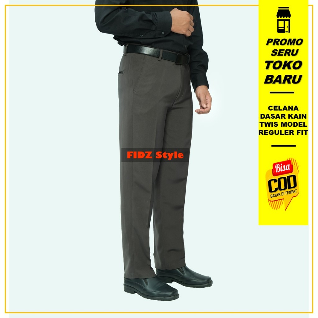 [Mall] Celana Bahan Formal Pria Standar Reguler Kain Katun Twist FIDZ Style F4