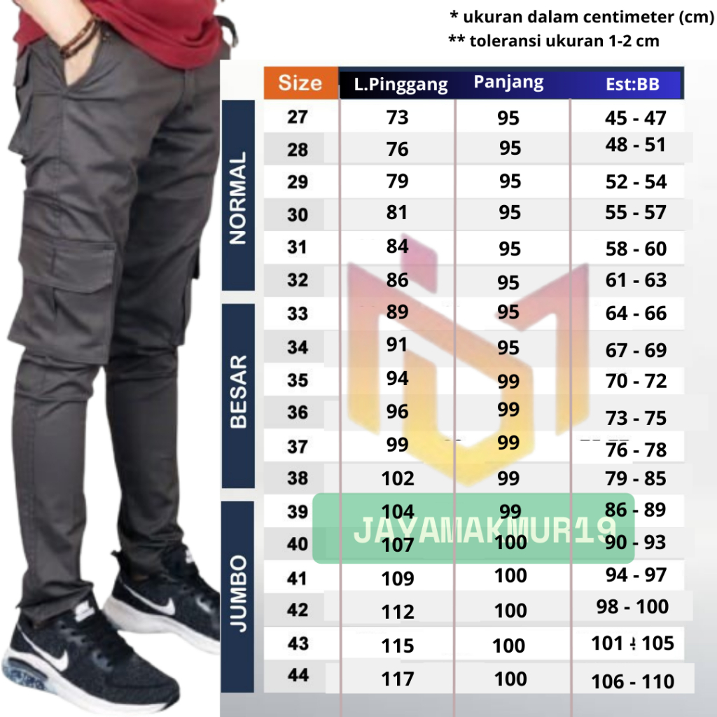 [Mall] Celana Cargo Panjang Pria Slimfit Kasual Premium Kargo Pdl Polos Hitam Laki Jumbo Army Size 27 - 38