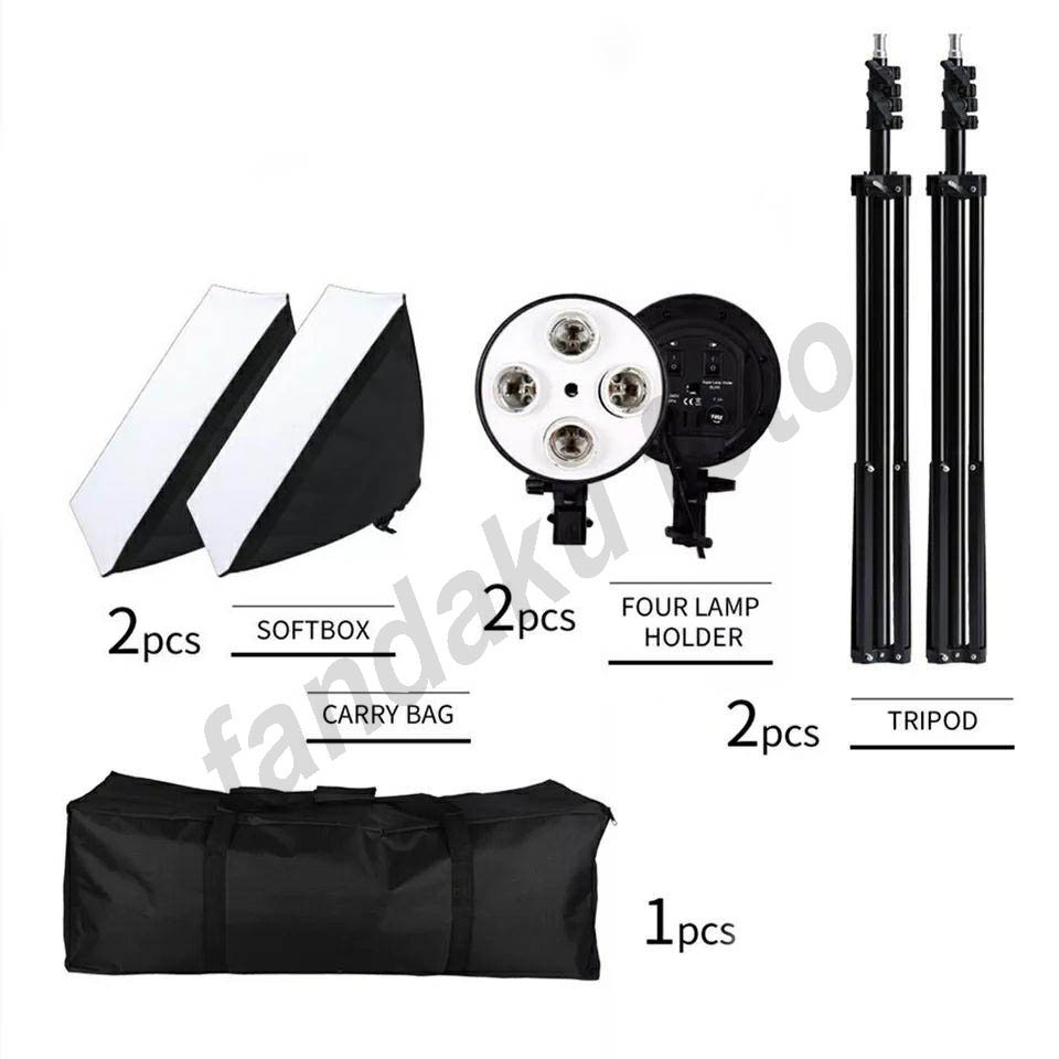 Paket lighting Studio softbox 4 socket tipe continous untuk lampu video