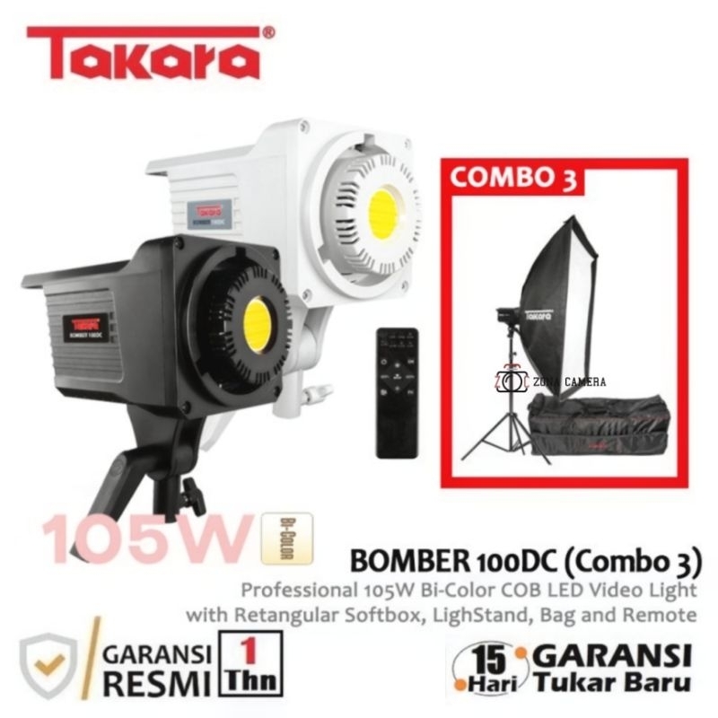 Takara Bomber 100DC LED Video Light Studio Professional 100 DC Paket Lampu Studio WHITE/BLACK
