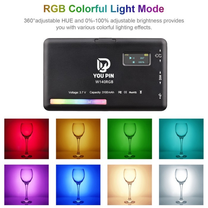 YOU PIN W140 RGB LED Video Lighting Perlengkapan Lampu Studio Foto Lampu Studio LED Vlog Video