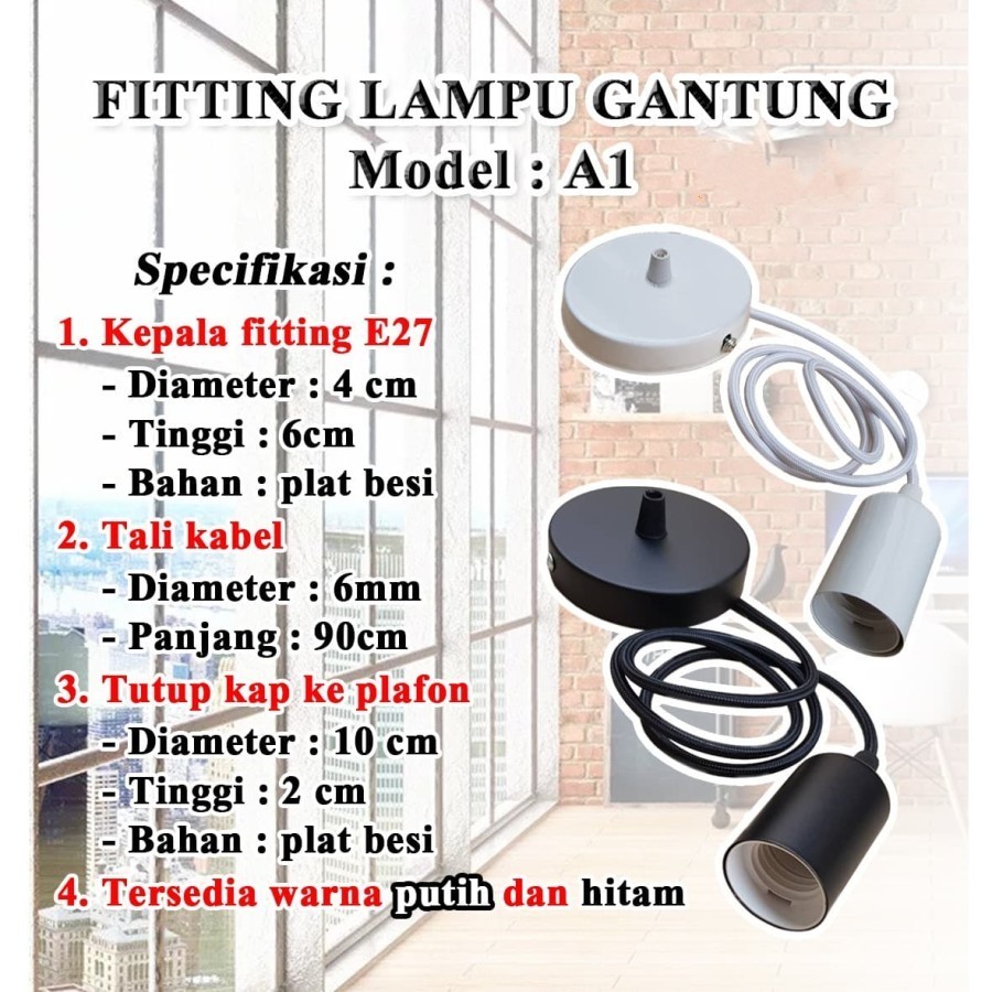 Fitting Lampu Gantung E27 Model A12 Hitam putih