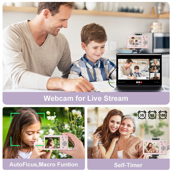 Kamera Digital 4K 50MP UHD Vlogging Camera untuk YouTube Kompak dengan Zoom Digital 16X Anti-Guncang