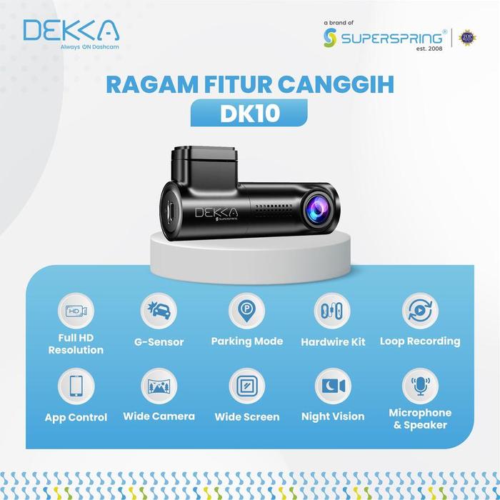 DEKKA DK10 Dashcam Mobil Full HD Kamera Depan Wifi 2.4 GHz Always On Gratis Pemasangan