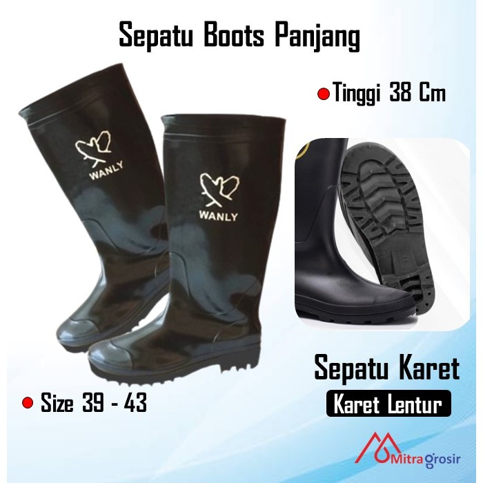 Sepatu Boot Hitam / Sepatu Proyek Hitam / Sepatu Boot Laki-Laki Bot Karet Boots Murah Panjang