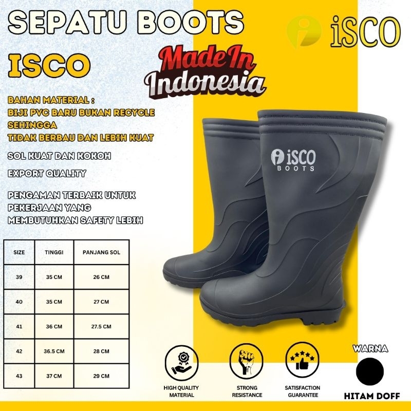 Sepatu BOOT iSCO MADE in INDONESIA bahan DOFF, Serat dalam full, kualitas A+ TERSEDIA HIJAU, KUNING, HITAM