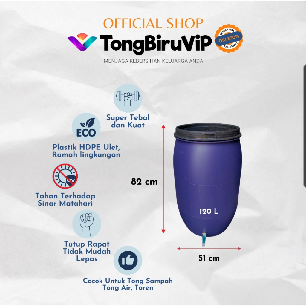 120L Tong Air Biru + Kran. SUPER TEBAL & KUAT 120L (termasuk Tutup, Seal dan Kran)