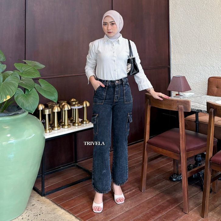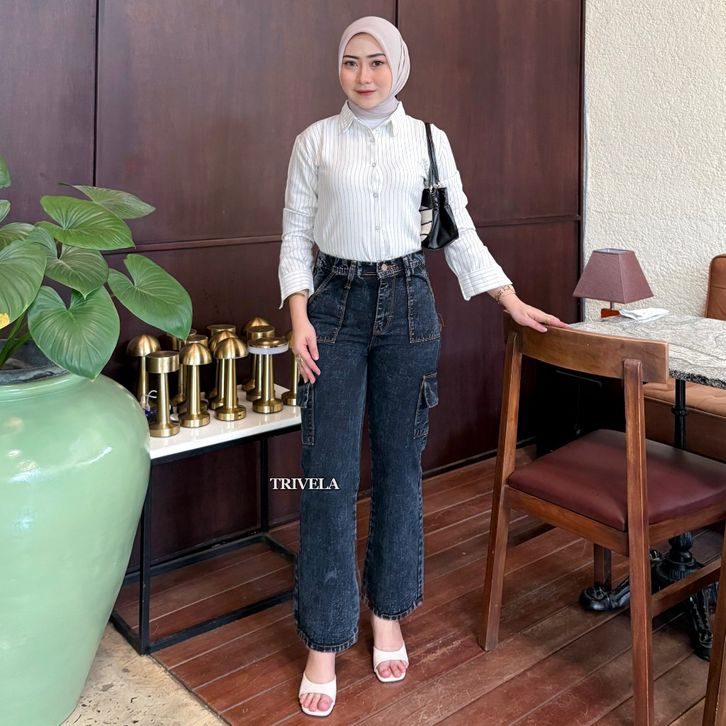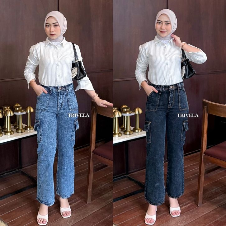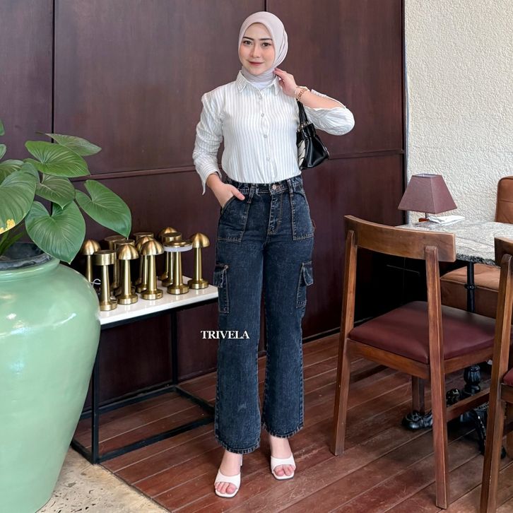 CELANA JEANS WANITA HIGH WAIST JUMBO KEKINIAN TERBARU BAGGY PANTS KOREAN STYLE OOTD | HIGHWAIST LOOSE BLACK JEANS CARGO