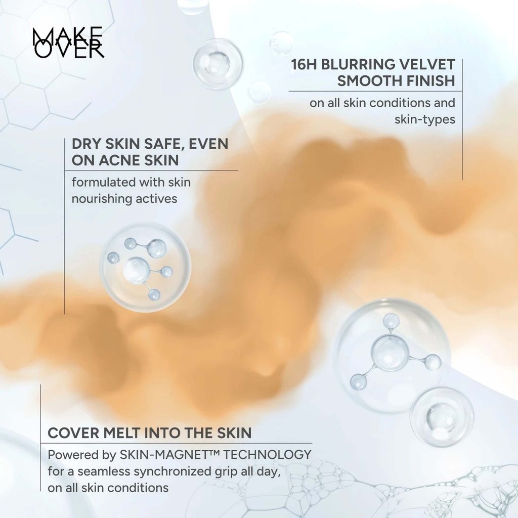 MAKE OVER Perfect Cover Powder Foundation (FULL/REFILL) - TWC Two Way Cake Cover Melt and Blur Powder 16H Blurring Velvet Smooth Finish