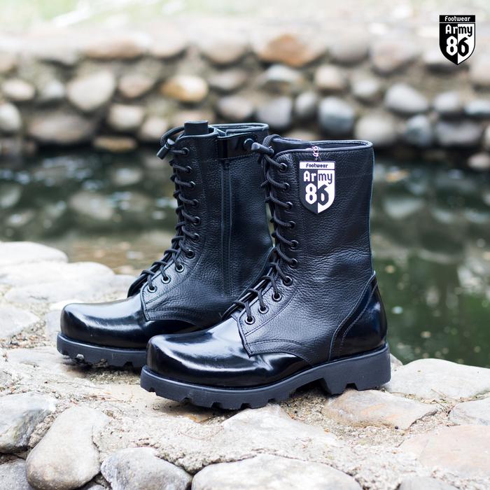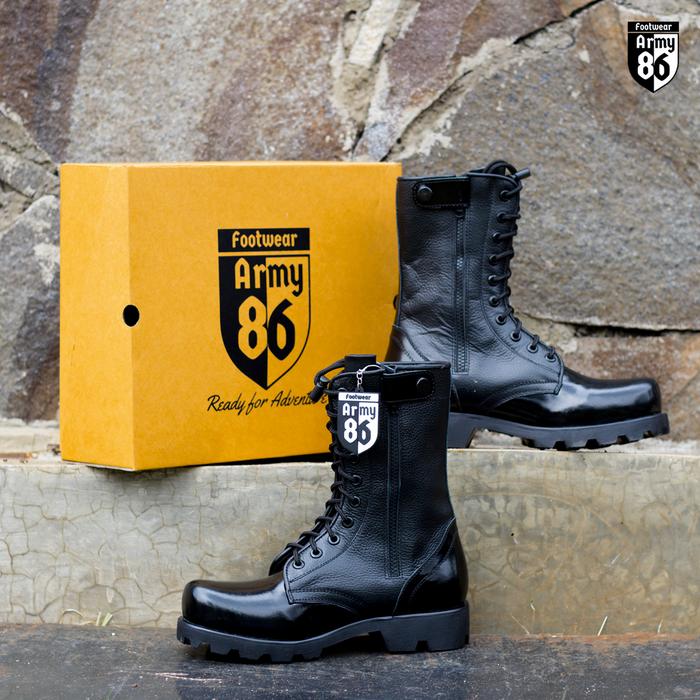 Army 86 Sepatu PDL Boots Hitam kulit jeruk TNI Polri satpam Satpol PP Dinas Lapangan model Astro