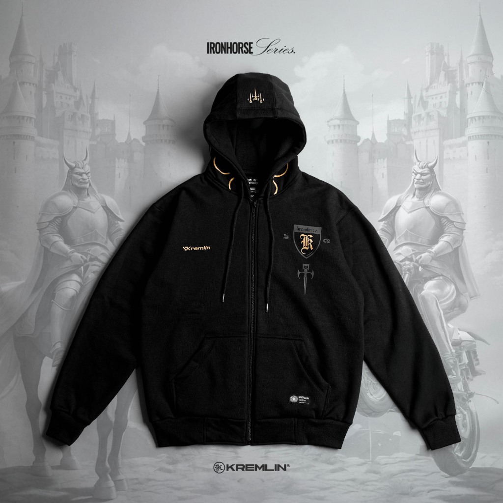 Kremlin Official Store - Zipper Hoodie Ironhorse Series Black - GHOST - Jaket Pria Distro Original Import