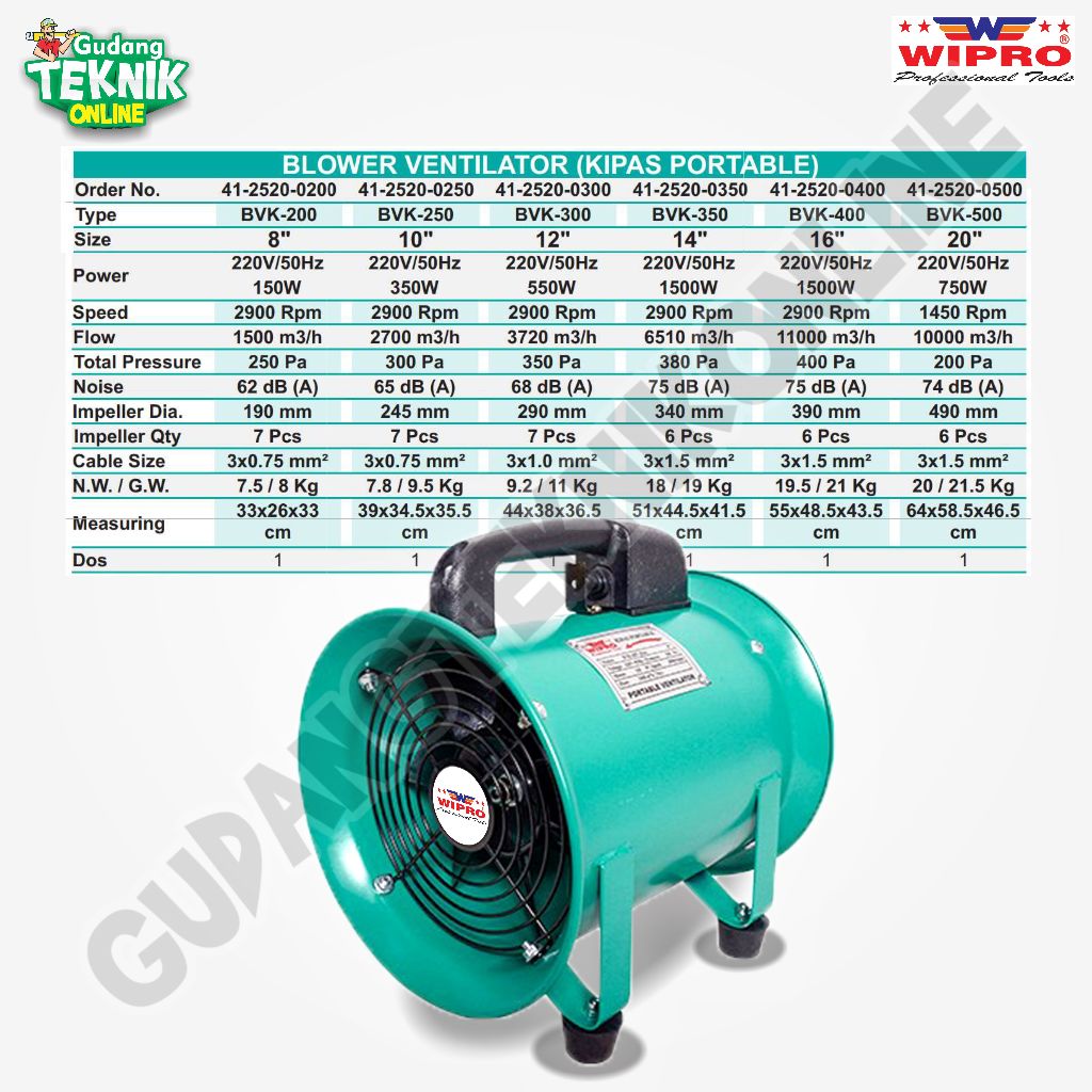 Blower Ventilator 8" 10" 12" 14" 16" 20" WIPRO / Kipas Blower Angin Udara 8 10 12 14 16 20 Inch Exhaust Blower Portable