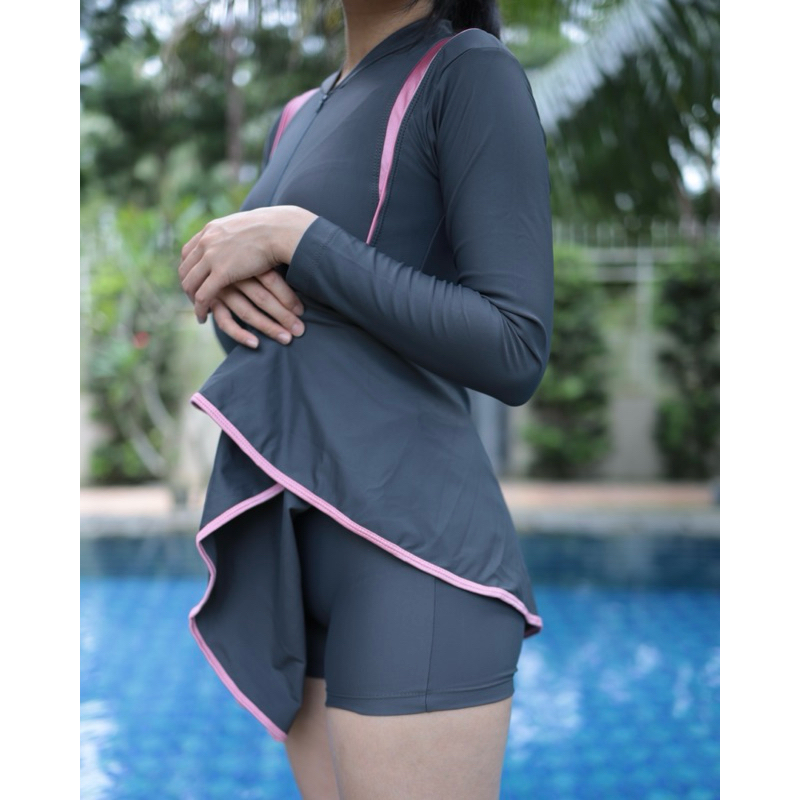SPORT CLUB Dv 136 Tp-Rok Baju Renang Wanita Ladies Diving Swim Suit Rok Tangan Panjang SC