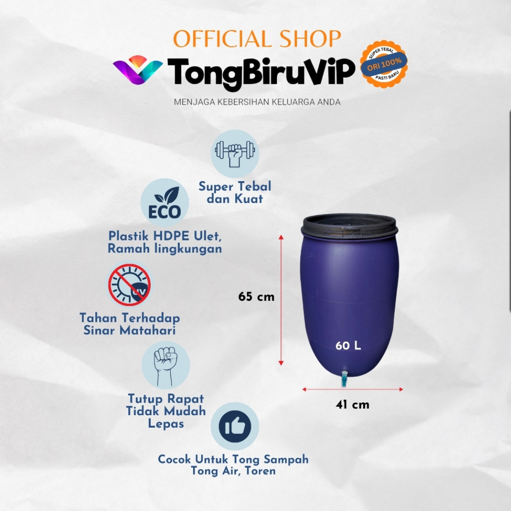 60L Tong Air Biru + Kran. SUPER TEBAL & KUAT 60L (termasuk Tutup, Seal dan Kran)