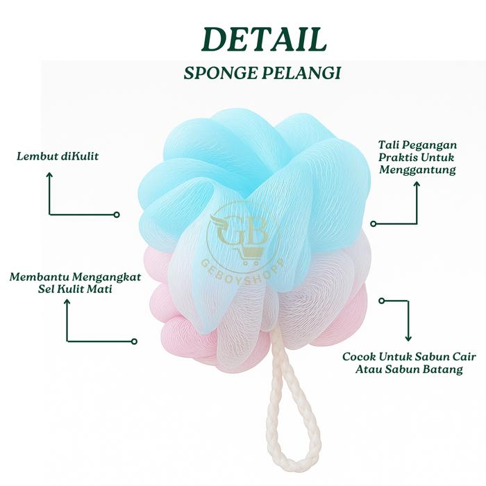 Spons Mandi Pelangi Lembut — Sponge Busa Bola dengan Tali Pegangan — Busa Banyak & Praktis!