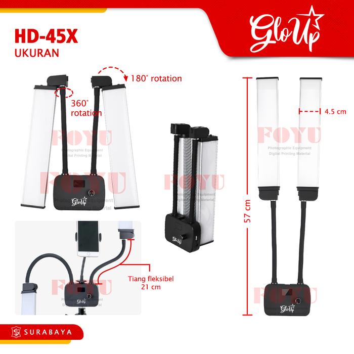 GloUp HD-45X LED Dual Bar Glam Light Lampu Rias MUA Make Up Makeup Nail Art Salon Spa