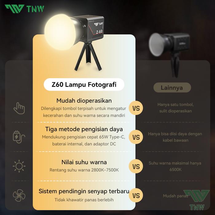 TNW Z60 Recble LED Video Light Portable Softbox Lighting Professional Fotografi Light 2800K-7500K