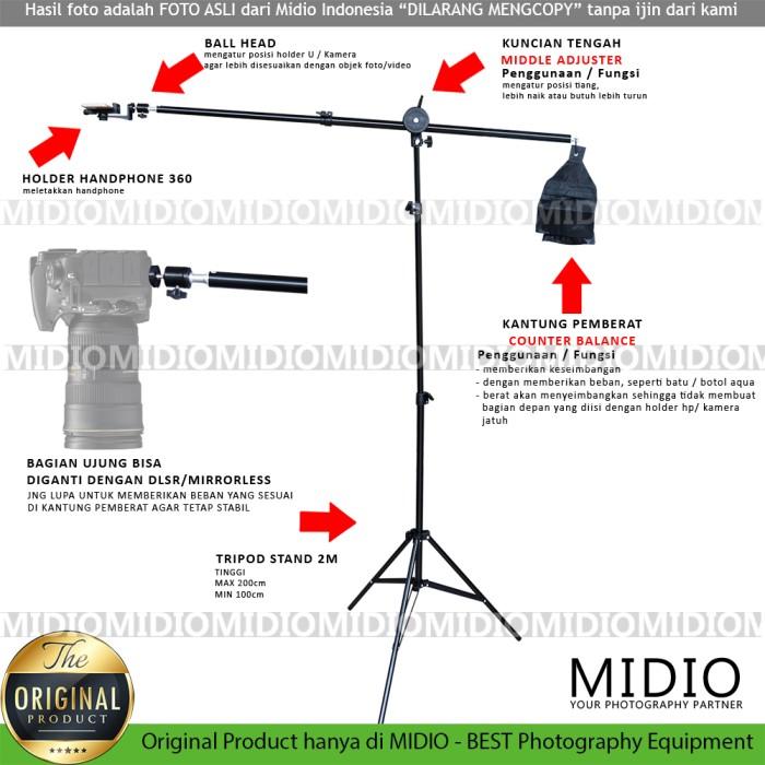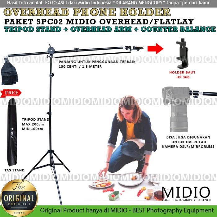 Midio Overhead Arm SPC02 + Tri 2M + Holder HP 360 Handphone Led Penyangga Aluminium