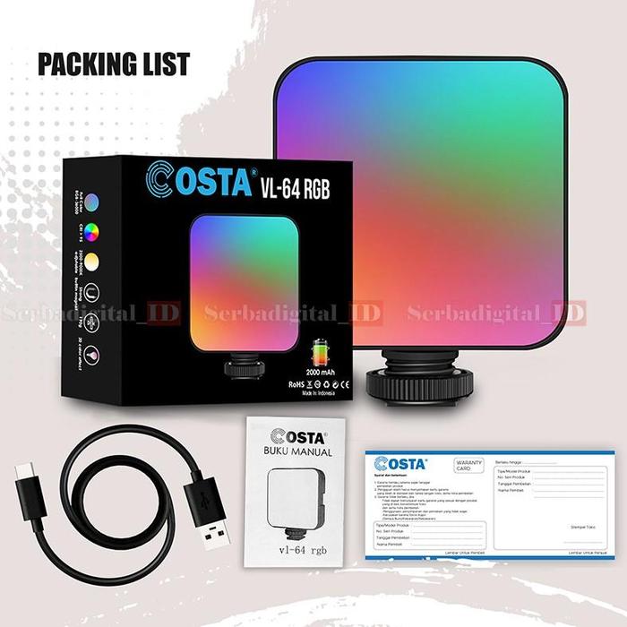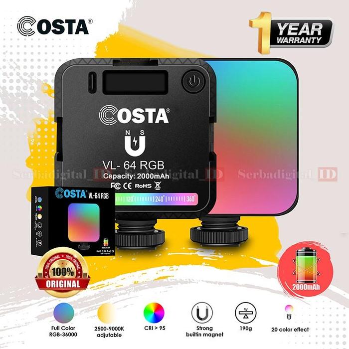 COSTA VL 64 RGB Mini Video Light Magnetic Ambient Studio Foto / Video Kuning Lampu Putih Baterai Usb