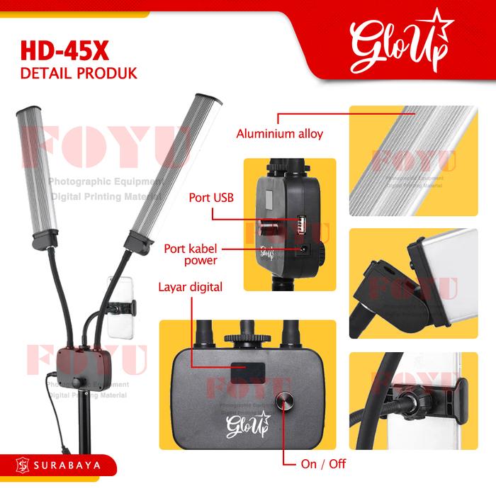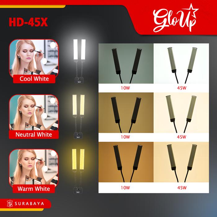 GloUp HD-45X LED Dual Bar Glam Light Lampu Rias MUA Make Up Makeup Nail Art Salon Spa