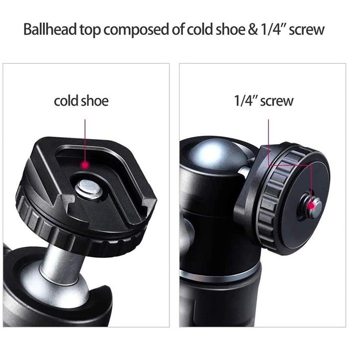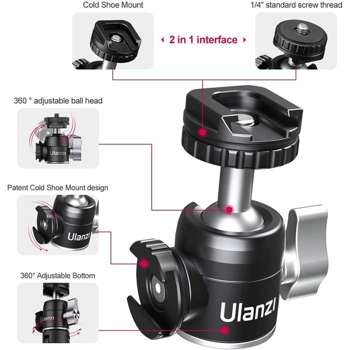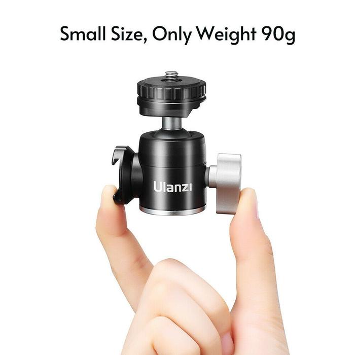 ULANZI U-60 Aluminium Alloy BallHead w/ Dual Cold Shoe 360 Ball Head 1/4 Quarter Screw Tri Mount