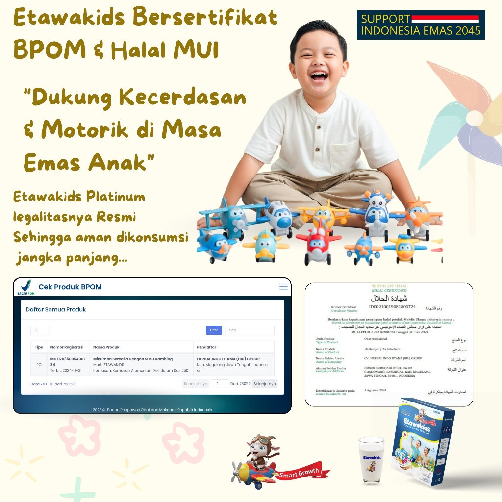 Susu Etawa Anak Etawakids Platinum dengan DHA, Omega 3 6, Whey Protein & Kalsium Nutrisi Seimbang untuk Otak & Tubuh Aktif 3 Box