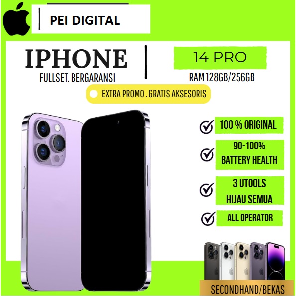 [Star] IP 14 PRO 128GB 256GB SECOND FULLSET (softcase,charger) ORIGINAL MULUS NORMAL NO MINUS BERGARANSI