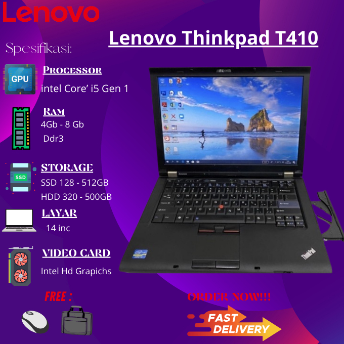 [Star] LAPTOP SECOND Lenovo Thinkpad T-SERIES T410 T420 T430 T440 T450 Core i5 Ram 8GB SSD 256GB MURAH MULUS BERGARANSI