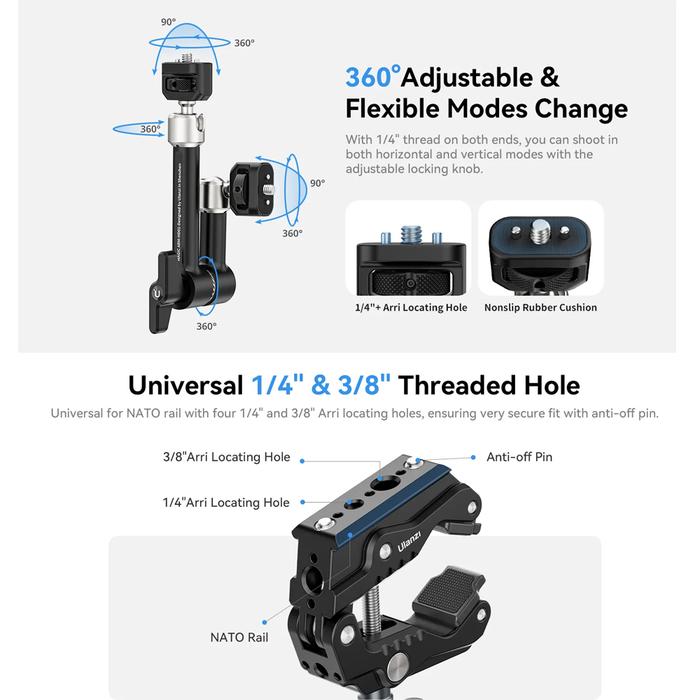 Ulanzi R011A Compact & Foldable Magic Arm with Crab Clamp