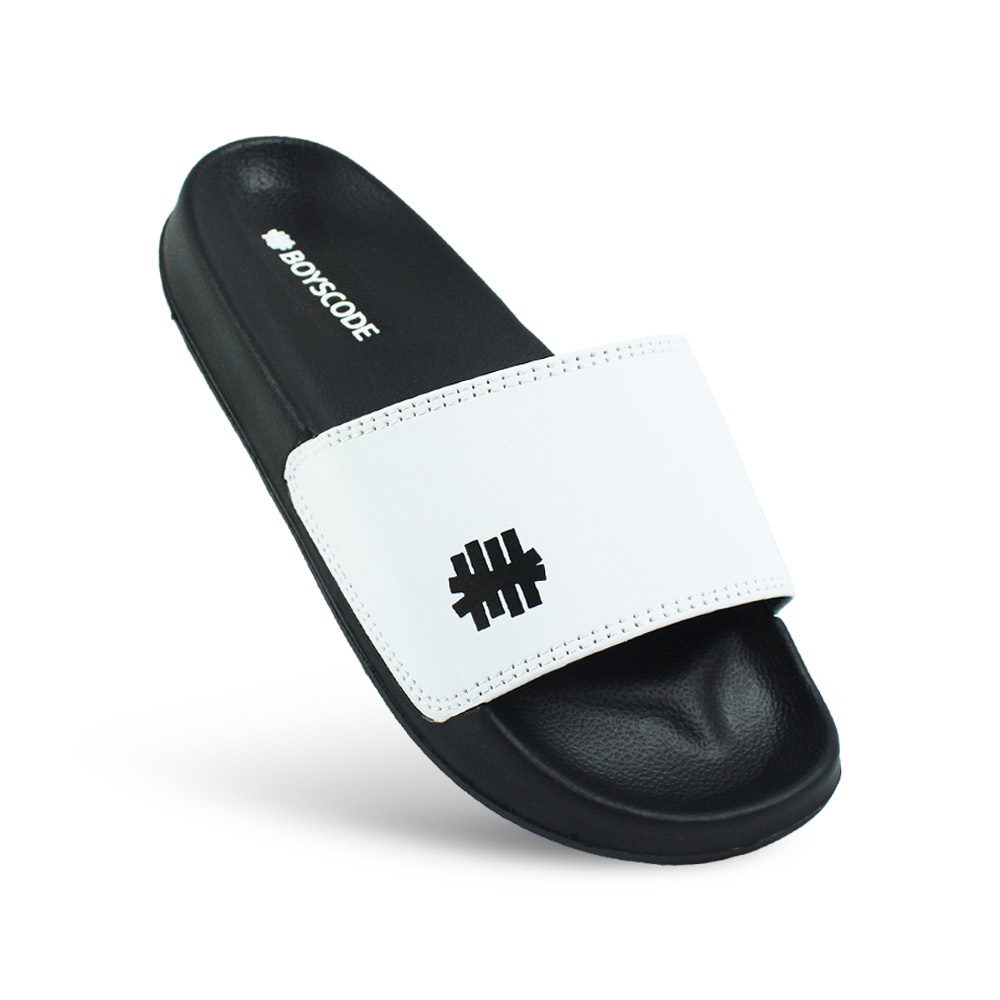 BOYSE Sendal Selop Distro Pria Wanita Original Petir Logo Hitam Putih / Slop Pria / Slip On Pria