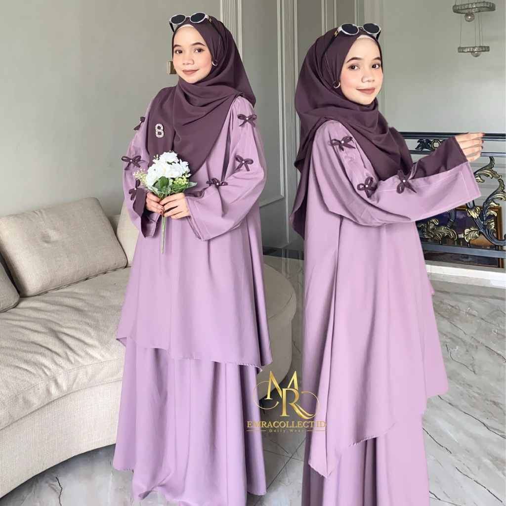 Aluna Setelan 2in1 Tunik Rok Anti UV Oneset Muslimah Malay Free Pashmina Oval Set Rok Pita by Emra