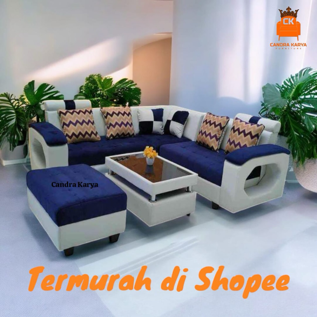 Kursi Sofa L Sudut Minimalis Ruang Tamu Modern Mewah Berkualitas + Puk