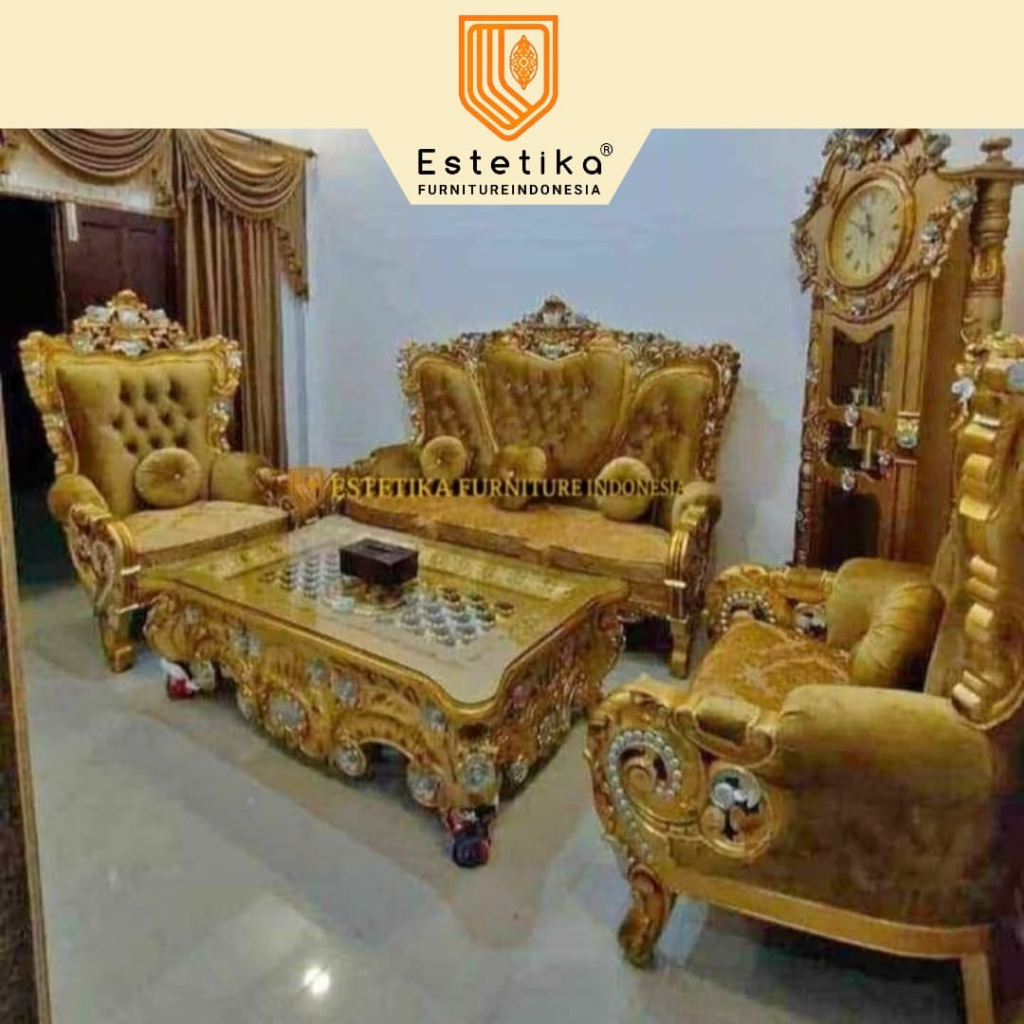 ESTETIKA FURNITURE INDONESIA Kursi Sofa Ruang Tamu Bellagio Full Ukir Jepara Finishing Mewah