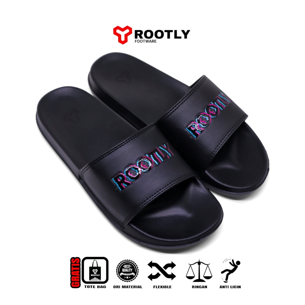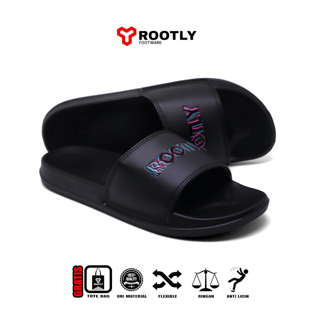 Rootly - Sandal Slide Cowo Blk Purple Algerian Sintetis Slipper