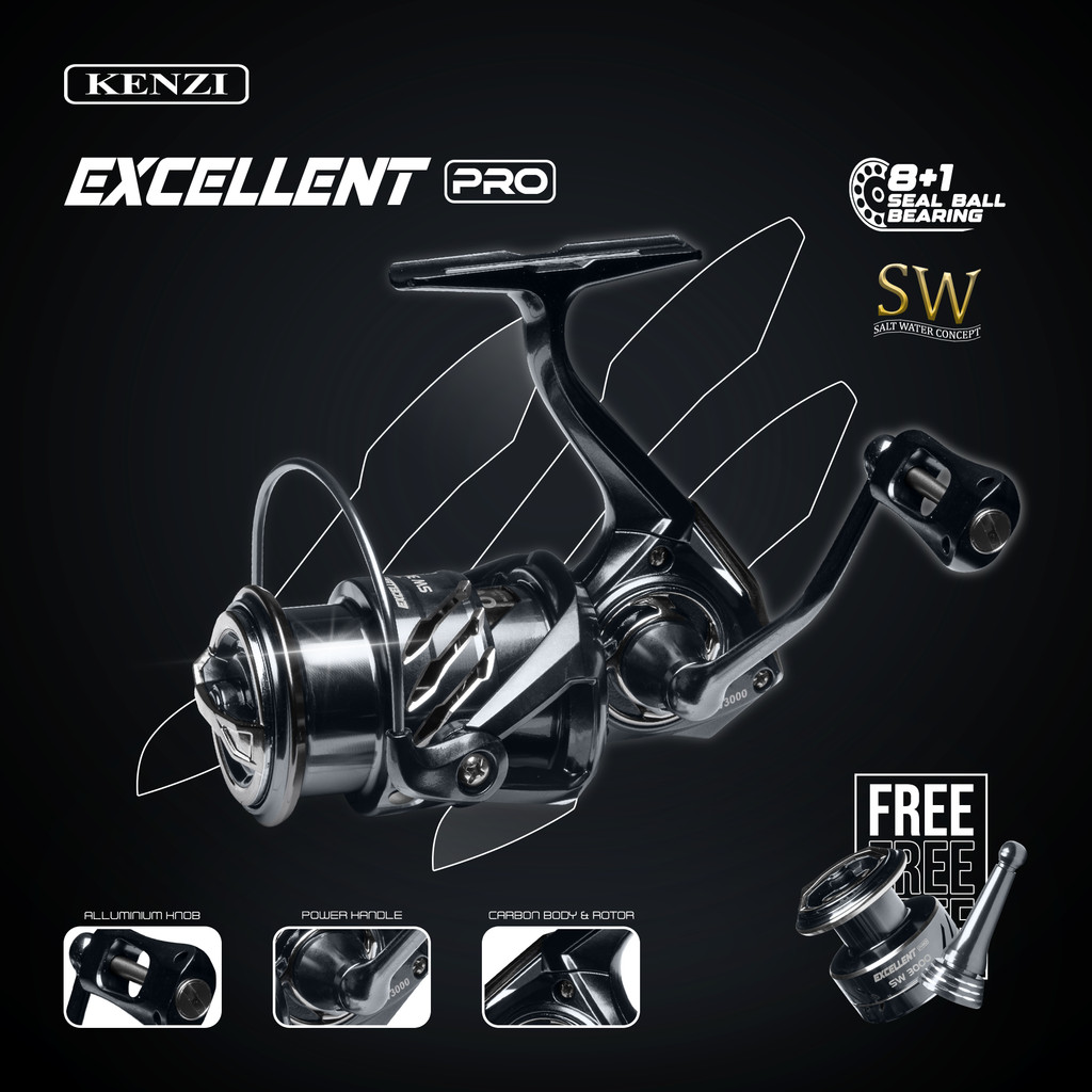REEL KENZI EXCELLENT PRO SW with REEL STAND and EXTRA SPOOL 1000 2000 3000 Spinning - Gulungan Pancing