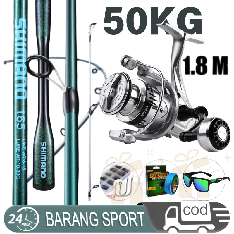 1 SET PAKET LENGKAP MEMANCING: Joran + Reel Spinning + Aksesoris Lengkap (Reel, Joran, Mata Kail, Tali 100M, Kacamata) -
