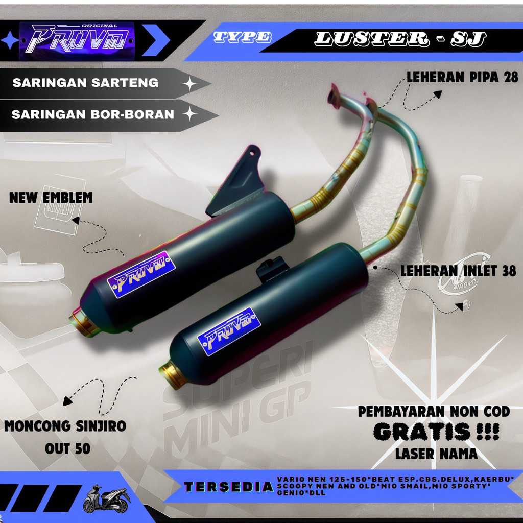 knalpot type luster emblem blue Inlet 38 out 50 moncong shijiro untuk motor beat karbu beat delux vario mio dll