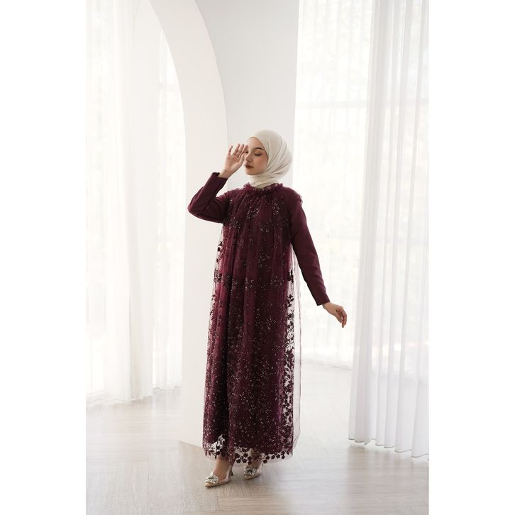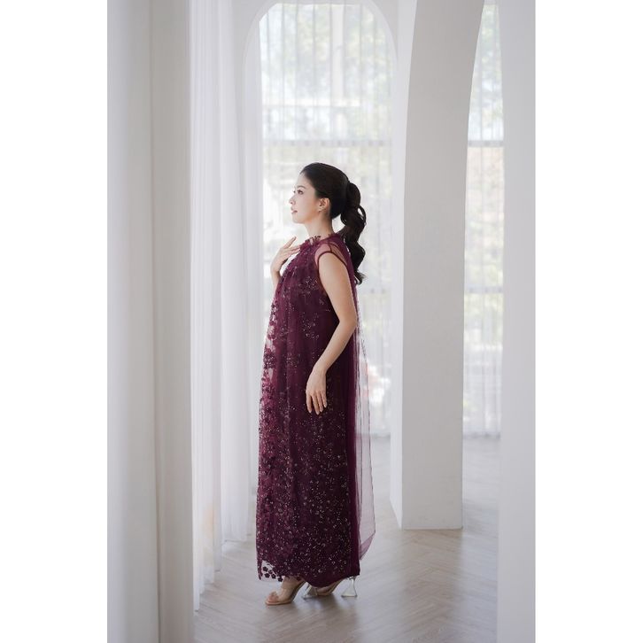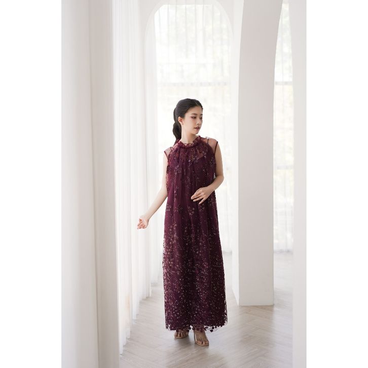 Aura Label - Clara Dress Burgundy Turtle Neck Ruffles