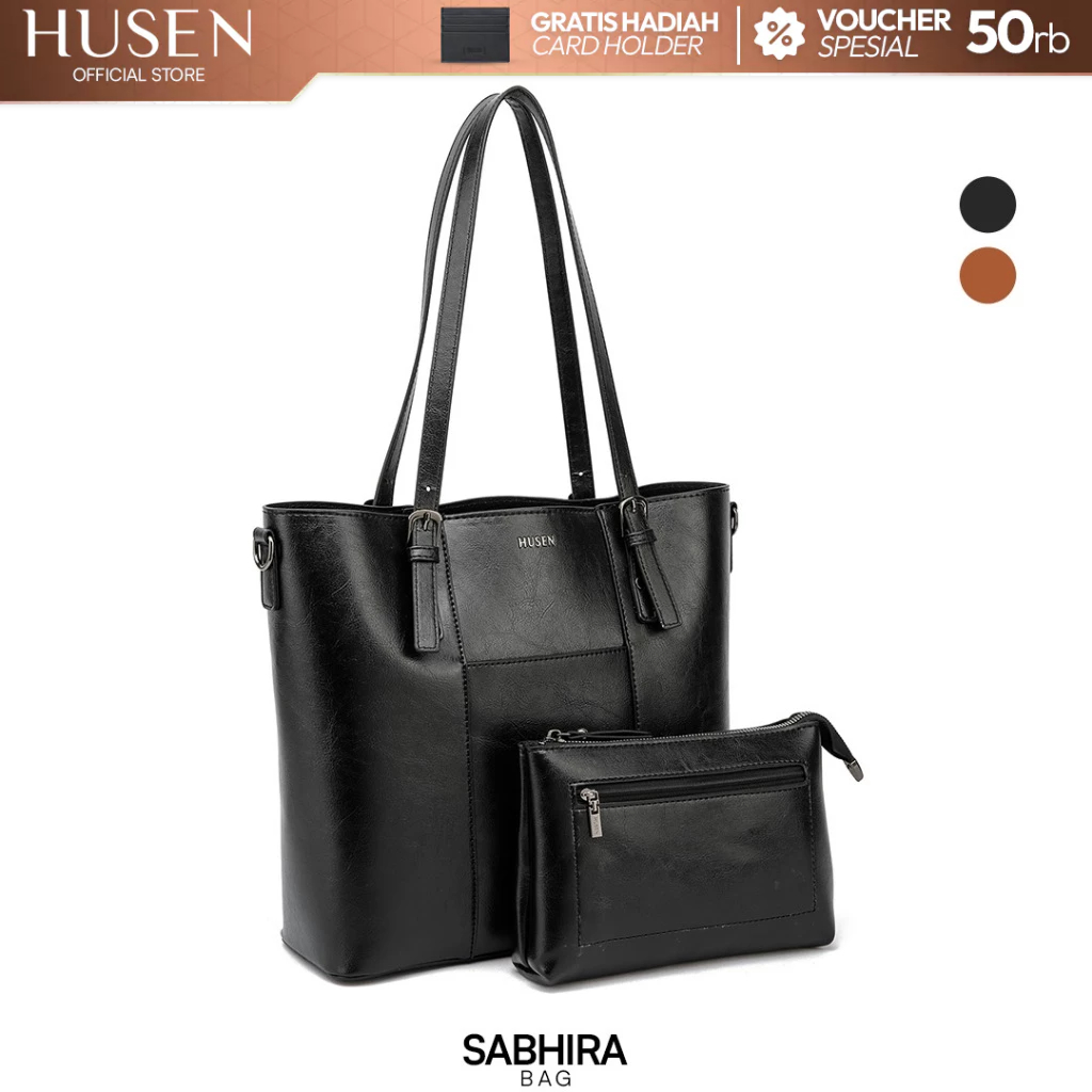 Husen Totebag Wanita 2 In 1 Sabhira Bag Tas Kerja Kuliah Jinjing Shoulder Bag Resleting